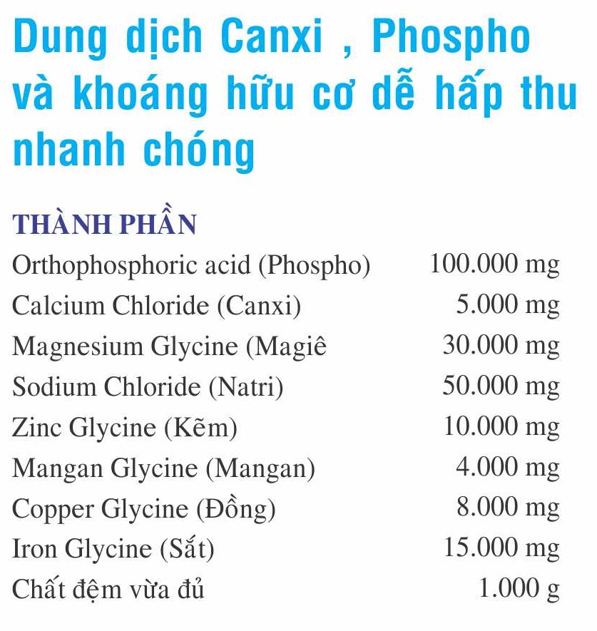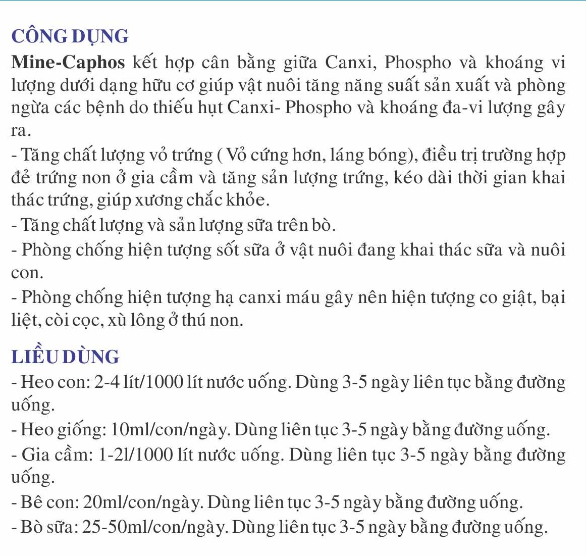 Cung cấp canxi, phospho và các khoáng chất phòng chống thiếu hụt canxi, chống bại liệt, sốt sữa, còi cọc cho thú